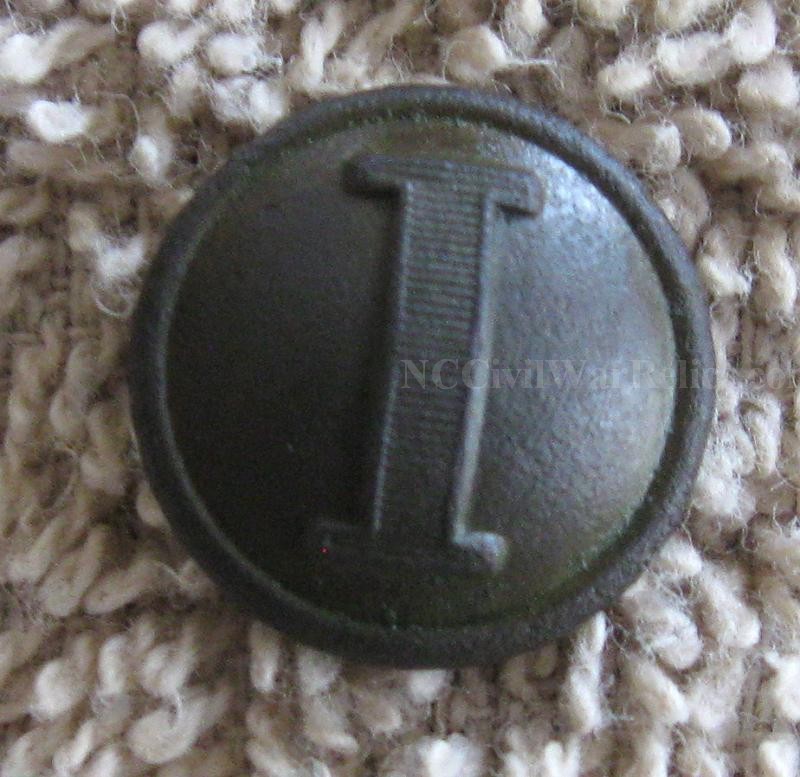 DUG CONFEDERATE BLOCK I CUFF OR KEPI BUTTON, MUCH DETAIL THE UNCLEANED BACK HAS TH HAS THE EXTRA RICH BACK MARK, THIS IS A REALLY BEAUTIFUL KEPI/CUFF BUTTON WITH MUCH DETAIL ON THE FACE 14MM the back is encrusted beautiful face