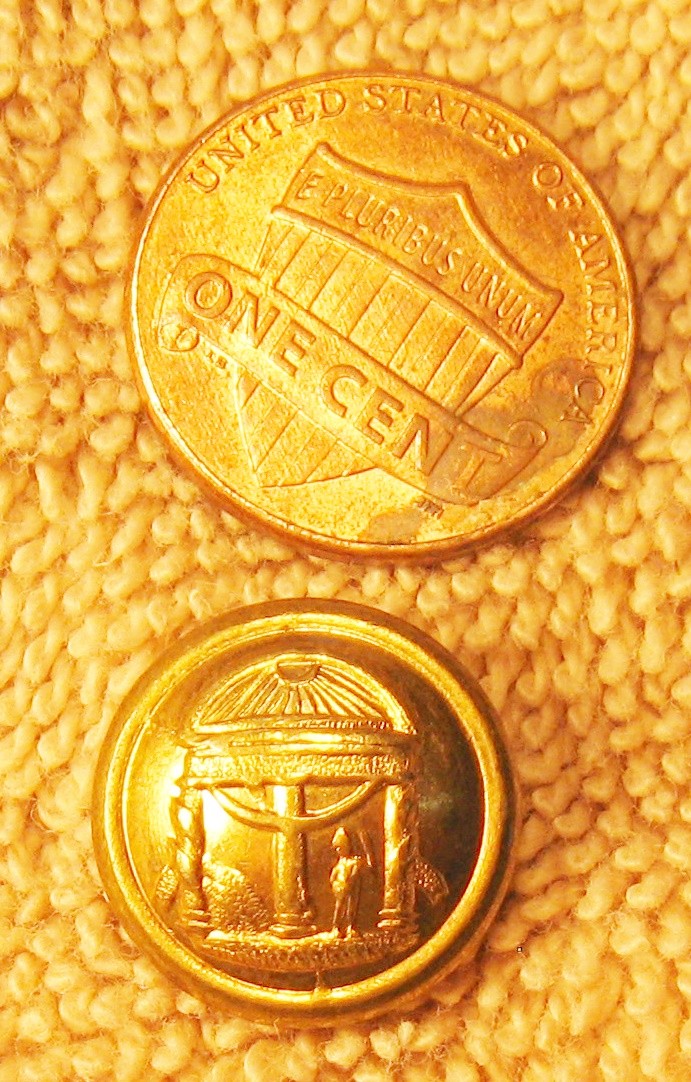 NON DUG GEORGIA CUFF OR KEPI BUTTON VERY NICE ALBERTS GA3Av TICES NUMBER GA204 As GEORGIA DOME WITH MILITARY FIGURE ON THE LEFT PLAIN FIELD BACK MARK WG MINTZER PHIL 15mm