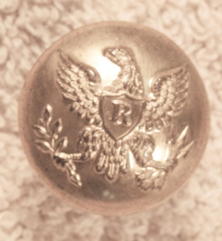 NON DUG EAGLE R COAT SIZE BUTTON THIS IS 1840 TO 50 STYLE LOWER CONVEX IN THE LARGER 23MM SIZE THE BACK MARK IS ROBINSON EXTRA RICH