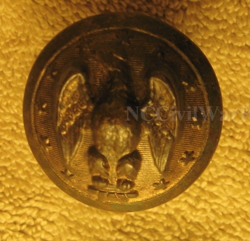 DUG CONFEDERATE STAFF OFFICERS COAT BUTTON THIS BUTTON HAS THE EXTRA RICH TREBLE GILT BACK MARK AND IS LISTED IN ALBERTS BOOK AS CS5 COAT SIZE 24MM THESE BUTTONS ARE EXTREMELY RARE DUG A FEW WERE ISSUED AND WORN IN LATE 1864-665 YOU PROBABLY SEE OVER 100 NON DUG TO 1 DUG THIS BUTTON HAS GOLD IN ALL THE RIGHT PLACES a top notch example I AM SORRY THE PICTURE OF THE BACK IS FUZZY